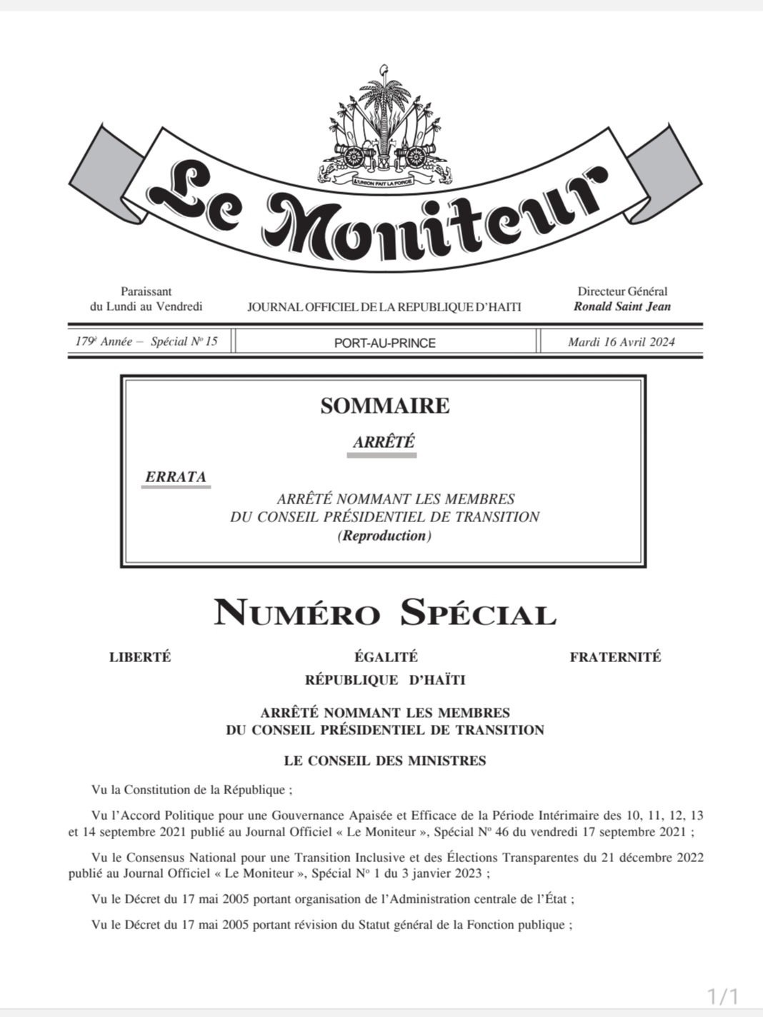 Le gouvernement démissionnaire a annoncé ce mardi 16 avril dans le journal officiel Le Moniteur les membres du Conseil présidentiel de transition. Ces membres comprennent