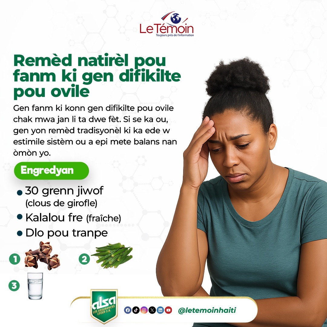 Gen fanm ki konn gen difikilte pou ovile chak mwa jan li ta dwe fèt. Si se ka ou, gen yon remèd tradisyonèl ki ka