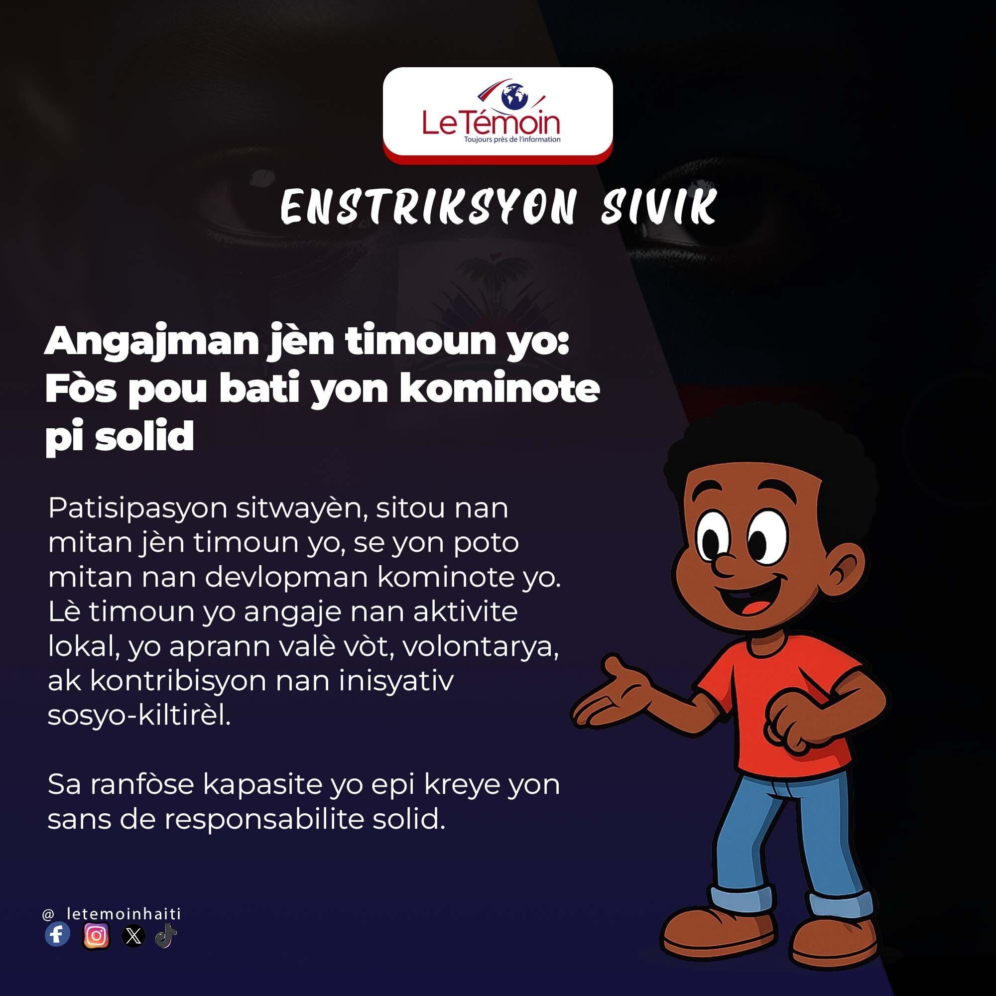 Patisipasyon sitwayèn, sitou nan mitan jèn timoun yo, se yon poto mitan nan devlopman kominote yo. Lè timoun yo angaje nan aktivite lokal, yo aprann