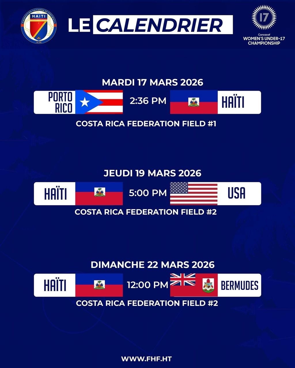 Les Grenadières U-17 disputent la phase finale des éliminatoires de la Coupe du Monde féminine U-17 de la FIFA, Maroc 2026. Placées dans le groupe