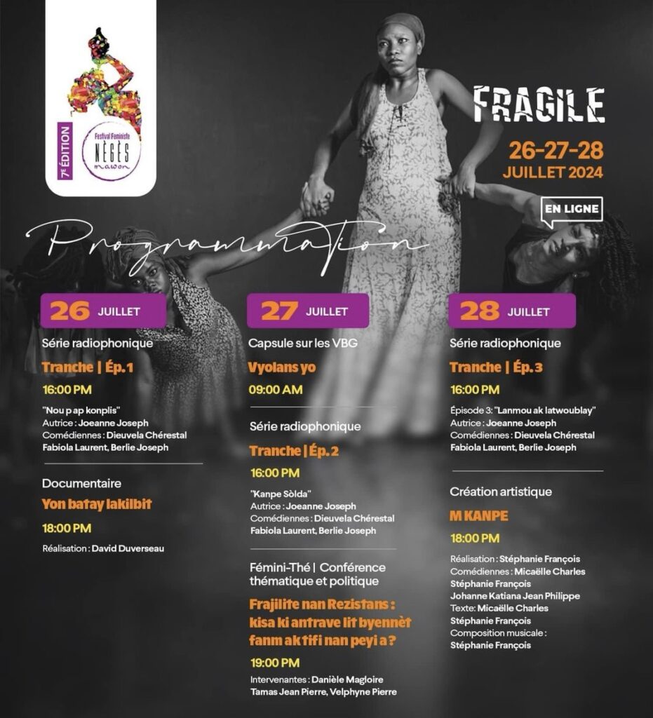 Nègès Mawon a annoncé la 7e édition de son Festival Féministe sur le thème «Fragile», qui se déroulera en ligne du 26 au 28 juillet 2024.