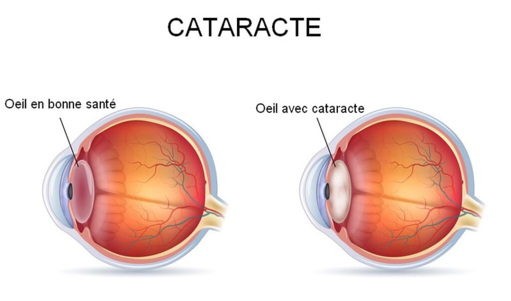 Les symptômes de la cataracte comprennent une baisse progressive de la vision de loin, une sensibilité à la lumière (photophobie) et une altération de la perception des contrastes. Dans les cas avancés non traités, la cataracte peut entraîner une perte de vision significative, voire la cécité. En outre, elle peut entraîner une élévation de la pression intraoculaire, augmentant ainsi le risque de glaucome aigu, une complication grave nécessitant une intervention urgente.