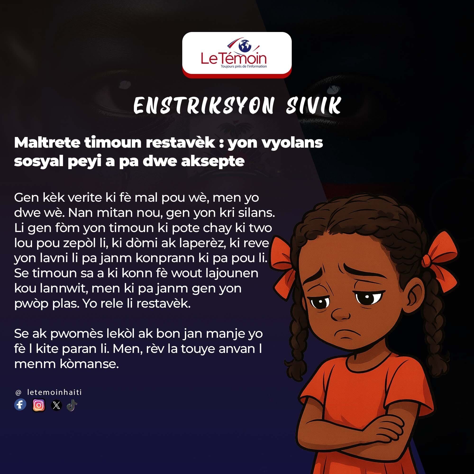 Gen kèk verite ki fè mal pou wè, men yo dwe wè. Nan mitan nou, gen yon kri silans. Li gen fòm yon timoun ki