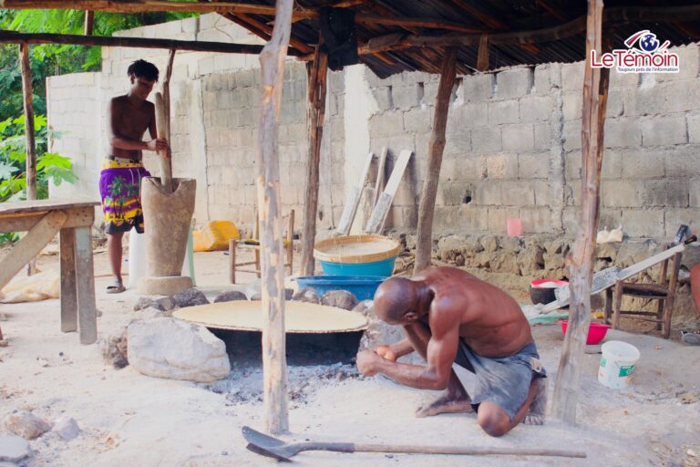 Dans la troisième section Wokou, à Limonade, au nord du pays, la fabrication de cassave reste une pratique profondément enracinée dans la vie quotidienne. Chaque jour, des hommes s’activent autour du feu, entre râpage, pressage et cuisson, pour produire ce pain traditionnel à base de manioc. Plus qu’un simple aliment, la cassave représente ici un héritage culturel, transmis avec rigueur et fierté à travers les générations.