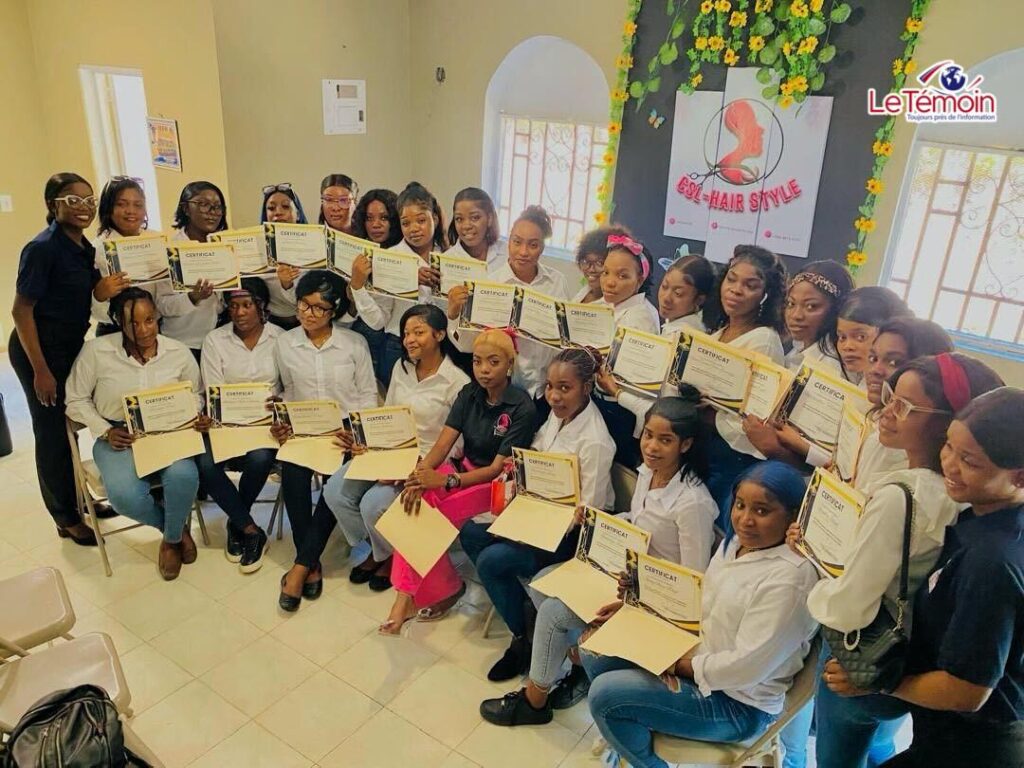 Un an plus tard, elle ose tresser une étrangère, avec rallonges. Elle n’était pas encore « professionnelle ». Elle ne maîtrisait pas tout. Mais elle y croyait. Ce jour-là, elle reçoit 150 gourdes pour son travail. Une somme modeste, mais pour elle, c’est comme un déclic. Elle comprend que ce qu’elle aime faire peut aussi devenir une façon de gagner sa vie.
