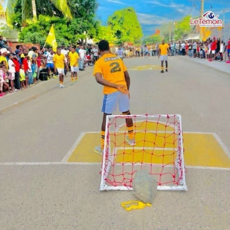 Ce championnat n’est pas un tournoi de « grand poteau » : ici, les buts sont petits, d’environ un mètre, et chaque équipe joue avec quatre joueurs. Ce format resserré rend le jeu rapide, technique, et très spectaculaire. L’ambiance est souvent électrique à partir de 6 heures du soir, quand la lumière tombe et que la rue s’illumine de projecteurs improvisés et de l’énergie du public.
