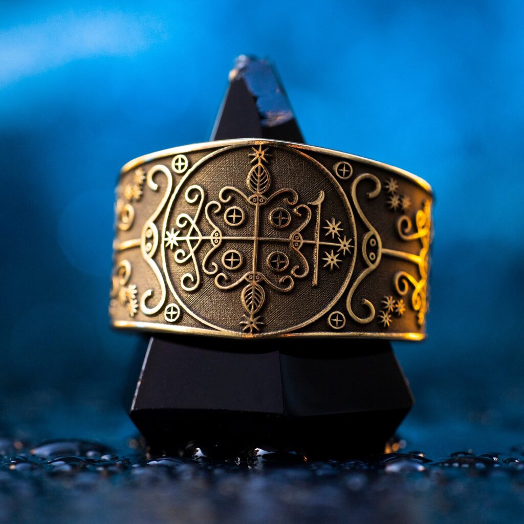 Les bagues, souvent fabriquées avec des matériaux spécifiques comme l’argent ou le cuivre, peuvent être ornées de symboles vaudous, de pentacles ou d’autres motifs spirituels. Chaque symbole est choisi en fonction des besoins de la personne, qu’il s’agisse de protection, de chance ou de guérison. Les praticiens croient que ces objets agissent comme des talismans, infusés d’énergie et de pouvoir par des rituels.