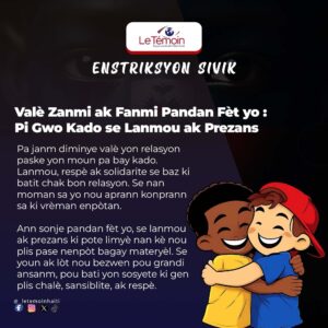 Etik sivik ak moral mande pou tout moun konpòtman egzanplè, sitou nan moman emosyon fò tankou konpetisyon espò. Lè nou respekte dwa lòt moun ak selebre nan lapè ak san vyolans, nou kontribye nan yon sosyete ki pi amoni ak respè. Ann sonje dwa nou fini kote lòt moun kòmanse, epi kite aksyon nou yo reflete verite fondamantal sa a.