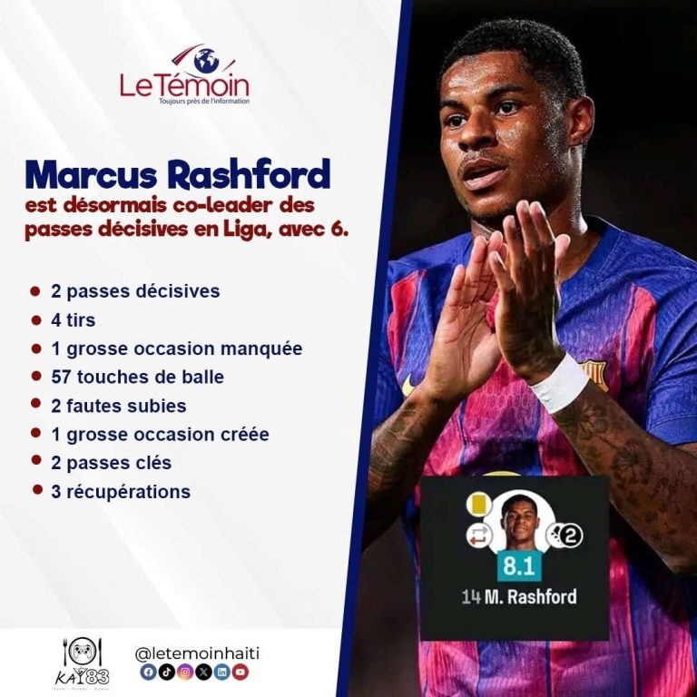 Marcus Rashford brille en Liga et partage désormais la première place du classement des passes décisives avec un total de 6. Lors du match contre le Celta Vigo, il a encore montré toute sa créativité et son influence sur le jeu.