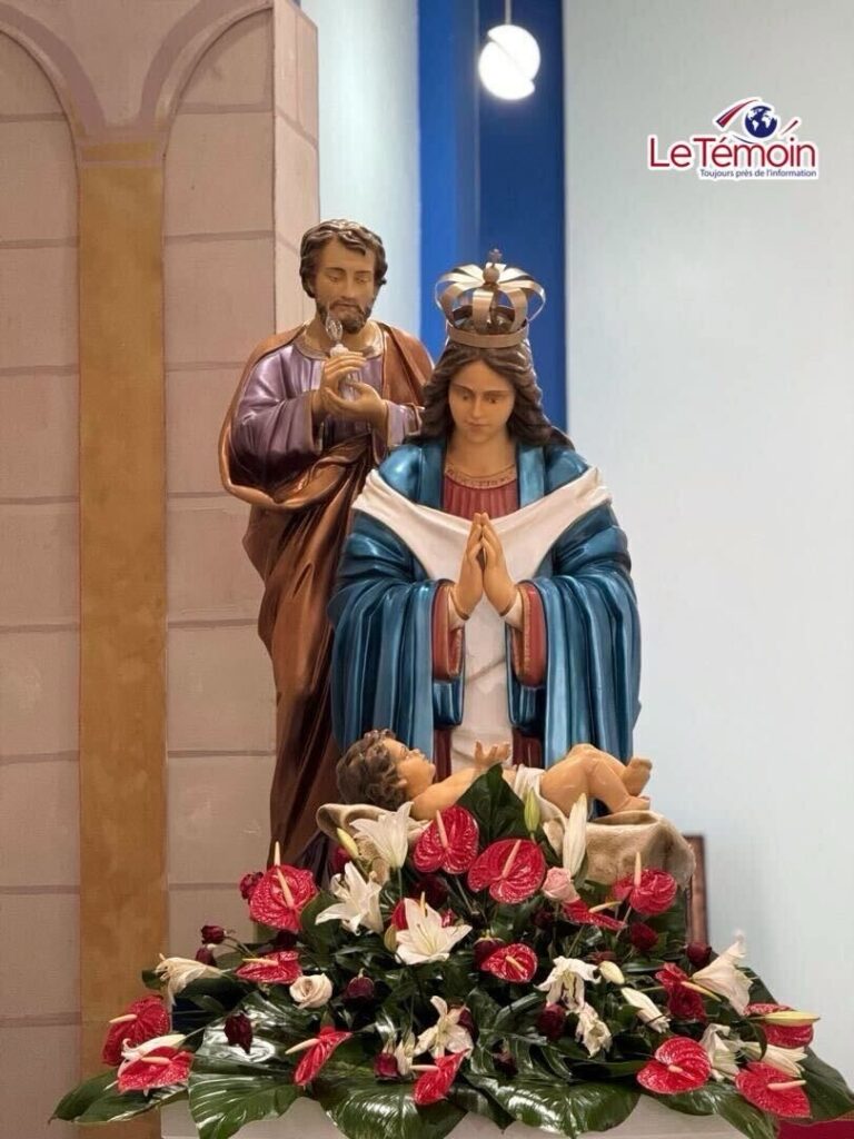 Notre Dame d’Altagrace, figure vénérée en Haïti et dans la culture catholique, est souvent représentée vêtue de bleu. Cette couleur symbolise traditionnellement la pureté, la protection et la maternité dans la tradition chrétienne, faisant écho à la Vierge Marie. Le bleu évoque également la paix et la sérénité, caractéristiques associées à la protection divine et au rôle de Notre Dame d’Altagrace en tant que protectrice des démunis et des femmes enceintes.