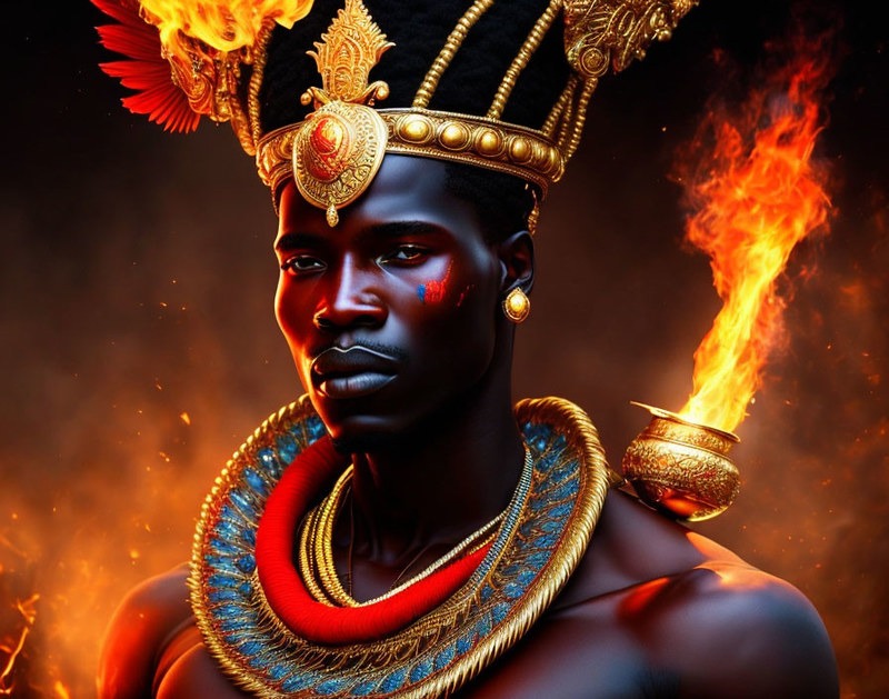 Il est souvent représenté comme un guerrier puissant et intrépide. Ogou est invoqué pour apporter protection, courage et force à ceux qui font appel à lui.