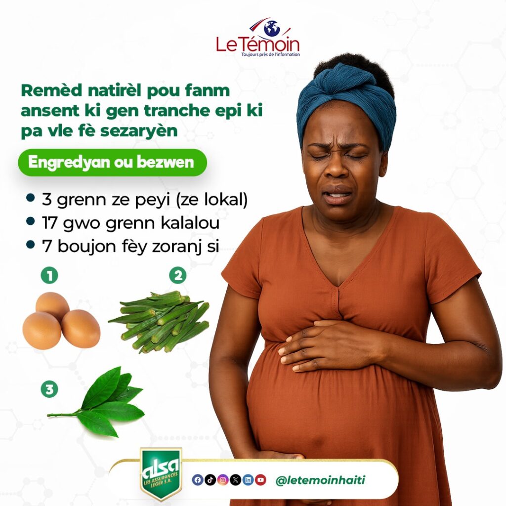 Men yon remèd natirèl ki soti nan tradisyon lakay, anpil moun itilize pou ede fanm akouche pi rapid lè yo deja gen tranche. Sa pa ranplase konsèy medikal, men li ka ede kòm yon ti soulajman si doktè pa wè okenn danje.