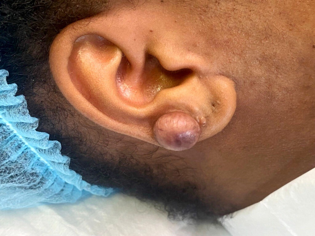 Chirurgie : Dans certains cas, l’excision chirurgicale de la chéloïde peut être envisagée, bien qu’il y ait un risque de récidive. Ce traitement est souvent accompagné d’autres thérapies pour prévenir la réapparition.